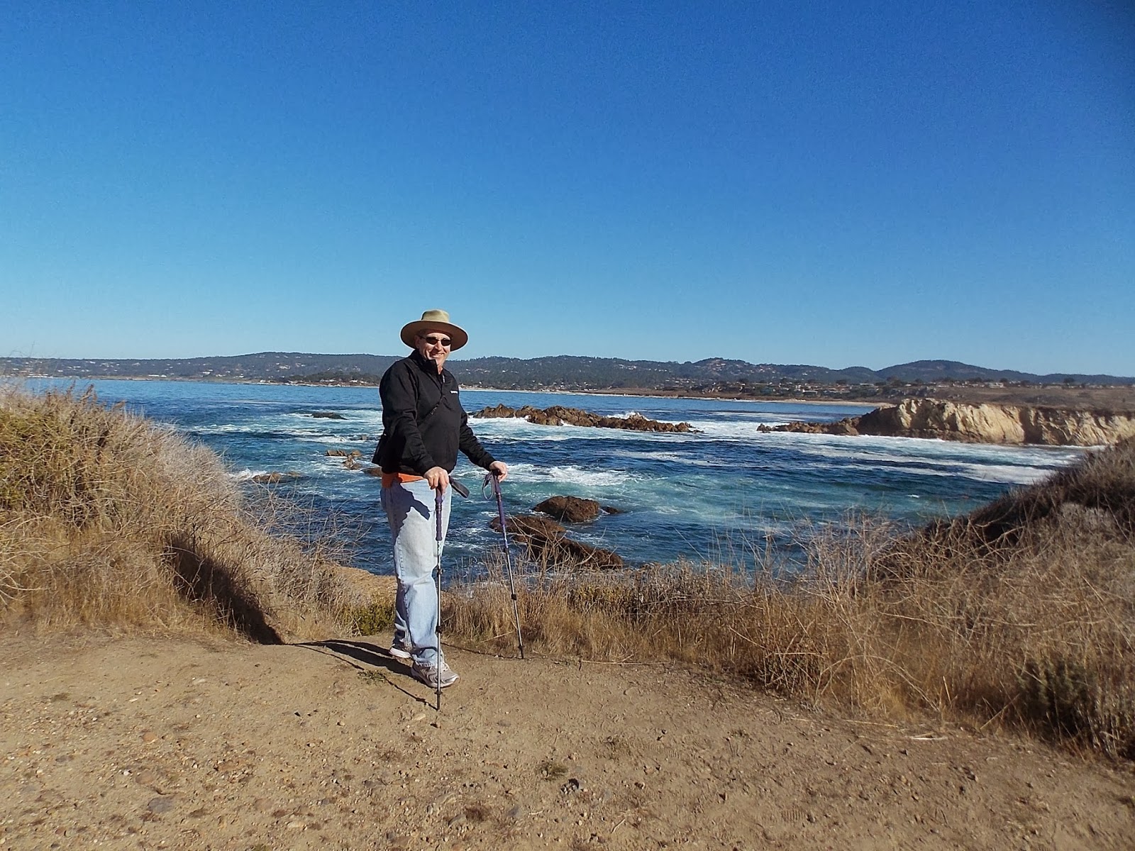Sunday morning, the weather is glorious, so we decide to return to Pt Lobos. We park on Route 1 and take the pedestrian entrance. We follow the Carmelo Meadows Trail and the Moss Cove Trail out to Granite Point.