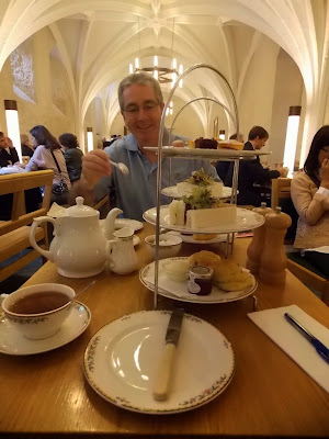 Donna, in a moment of inspiration, spots that they are serving high tea, and so we have our tea, scones and all, and it was just superb!