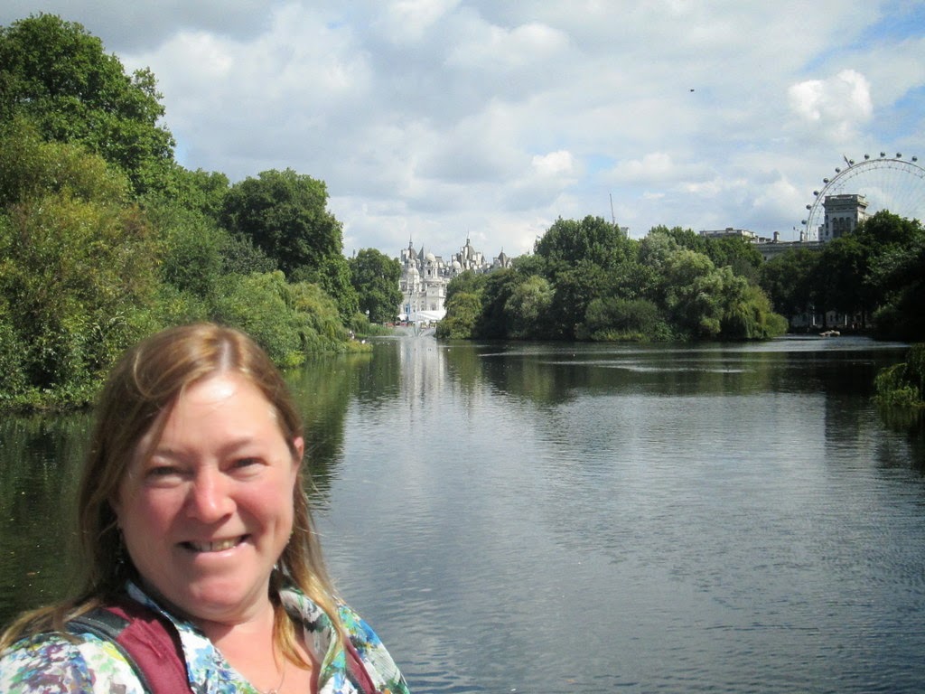 We cross through Parliament Square and over to St James's Park, where we walk through the park along the lake. Most of the birds are quite familiar (ducks, geese, swans, pelicans, coots, etc.) but it is fun to see them here in the heart of the city, and all the passers-by are delighted by them.