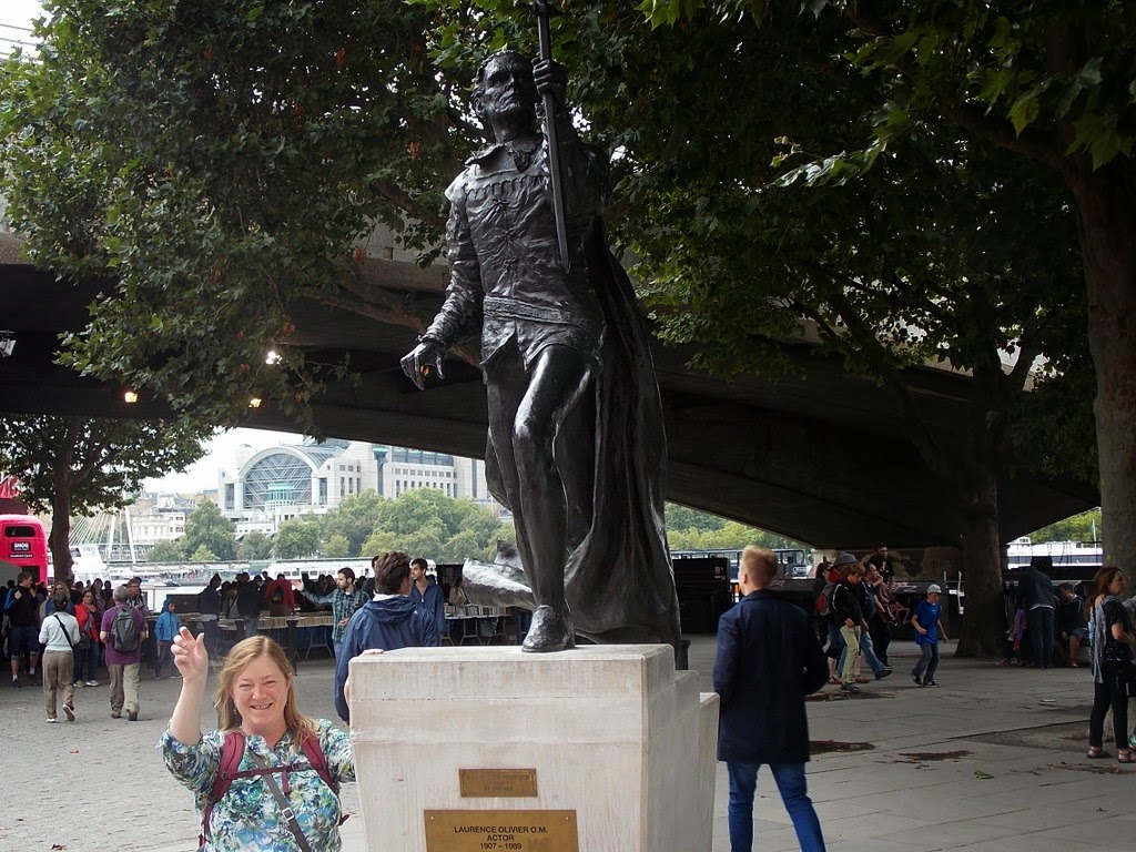 We walk along the south bank of the Thames. Past Blackfriar's Bridge we stop in Doggett's for a pint of Marston's and a rest. Fortified, we walk along the river until we reach the London Eye, passing a nifty statue of Laurence Olivier out in front of the National Theatre.