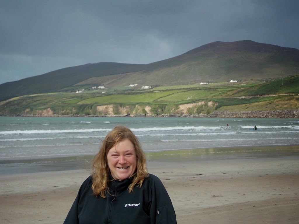 We strike west, out on to the peninsula, and stop for a walk on Inch Beach. The wind is howling; dogs are barking; children are playing, surfers are riding the waves. It is a special place.
