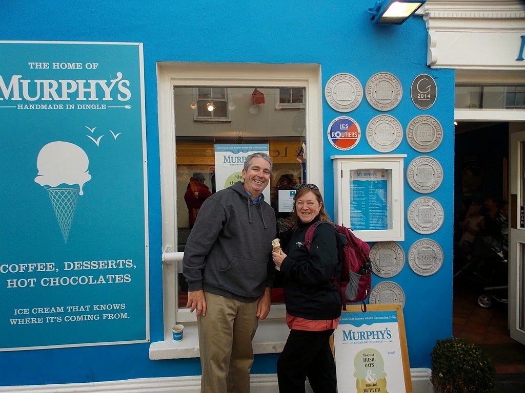 On we go, and finally we arrive in Dingle, which is just as delightful as everyone promised it would be. A beautiful harbor, fun shops, and a great ice cream store with locally-made ice cream: "carmelized brown bread" is the flavor we choose.