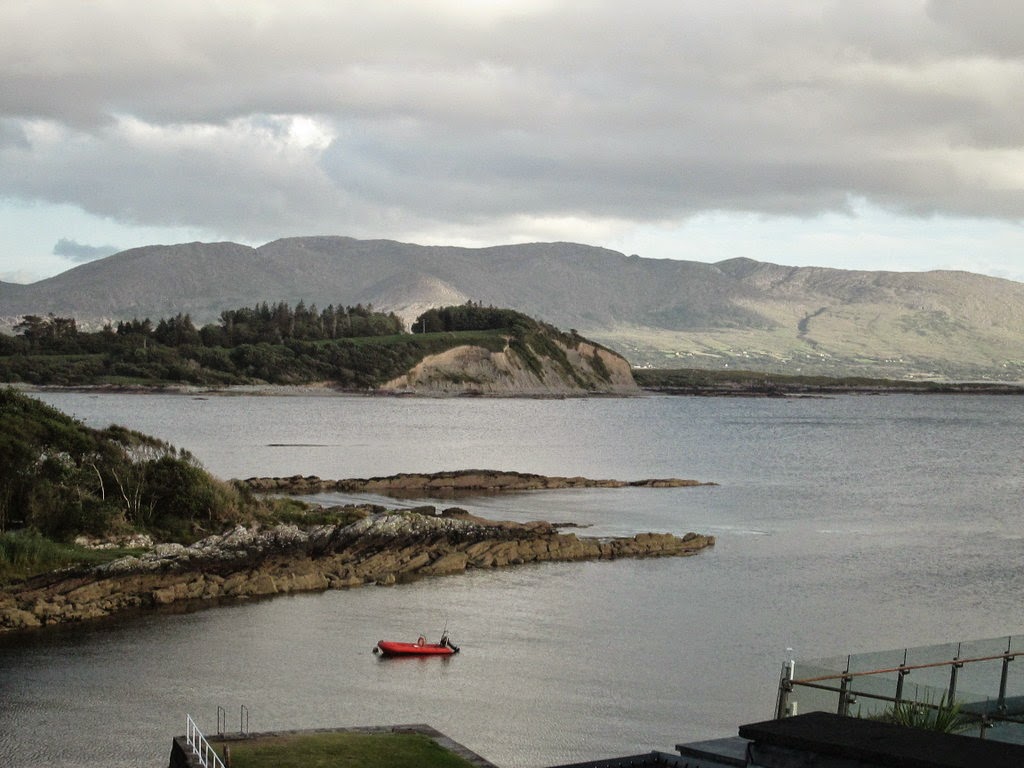 The drive from Killarney to Sneem is extremely dramatic, past lakes and mountains, winding along the cliffside, often only a single lane road, with massive tour buses racing along in the opposite direction. Eventually, we reach Sneem, and Parknasilla Resort, site of our anniversary celebratin, and an oasis of calm and beauty and a destination well worth the trip.