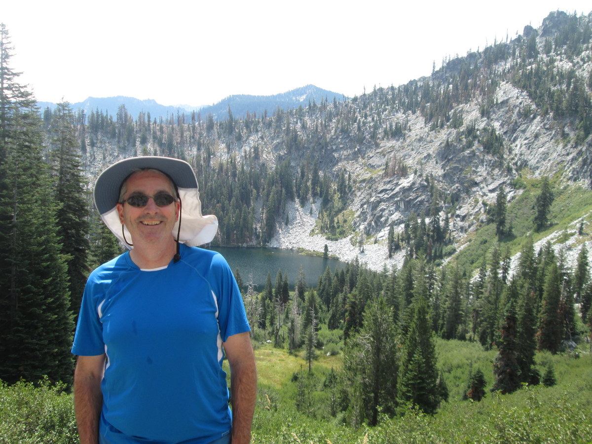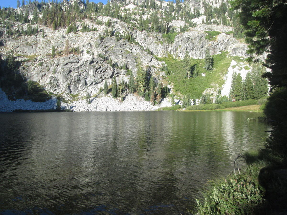- Above Paynes Lake is Albert Lake, which the map shows with a nice trail which should have started essentially at our campsite. The trail, however, is nearly impossible to find, and we found ourselves lost, climbing higher and higher on the canyon wall until it became nearly impassible. Our fearless leader, and best athlete, made his way carefully across the top of the canyon, and later reported to us that he had in fact found Albert Lake, and that it was indeed beautiful. Meanwhile, we had a nice lunch by Paynes Lake after carefully climbing back down.