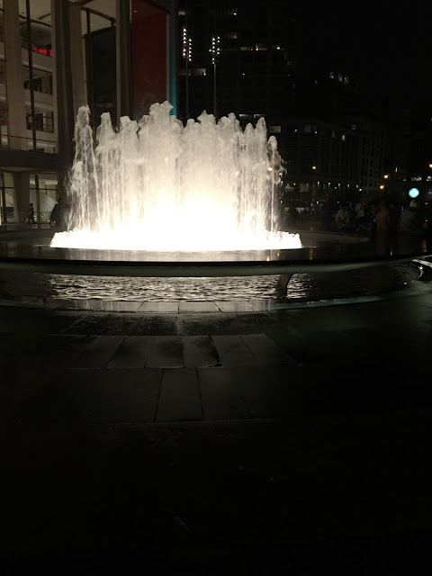 After a while we were tired, so we found a nice spot on the Upper West Side to sit for a while and rest and talk; when we were restored it was already getting on to dusk, so we made our way down to Lincoln Center to see the fancy theaters.