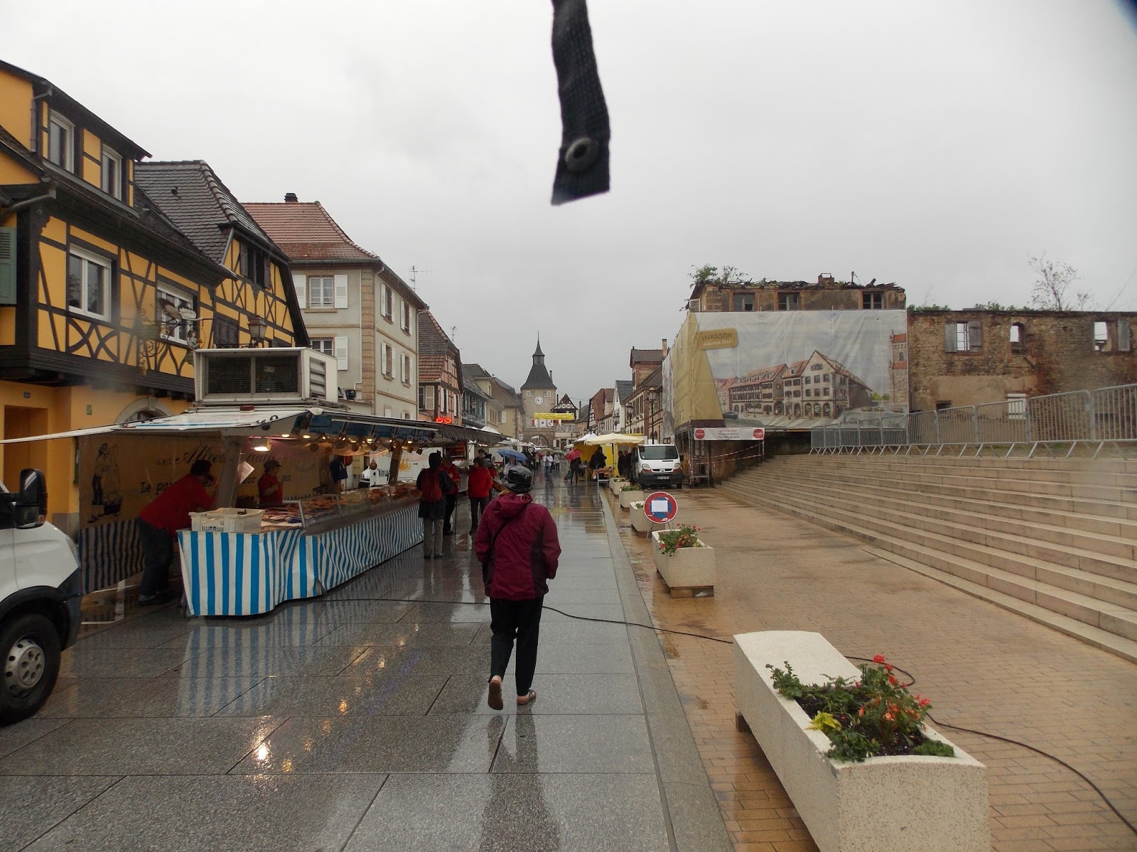 In Rosheim, we discovered that a drizzly morning doesn't keep the regional merchants from setting up shop in the town center for the weekly market. The enthusiastic staff of the fishmarket stall were only too happy to tell us all about the different types of regional seafood that they specialize in.