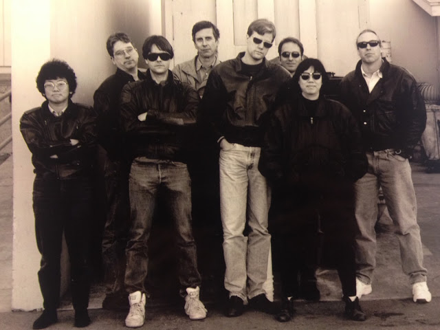 As for the picture, as I recall, we were looking for a theme for a team picture, and Nat and Brian both happened to be wearing their leather coats that day, and so somebody (Rich? Ken?) suggested we all get our coats and sunglasses and "look tough". So we did...